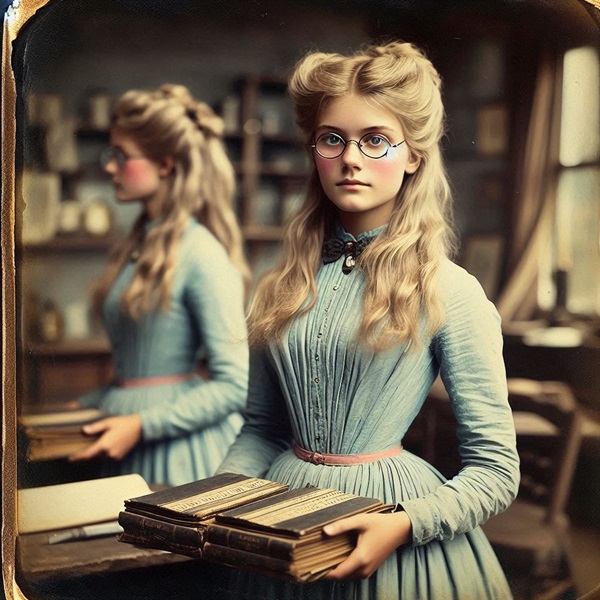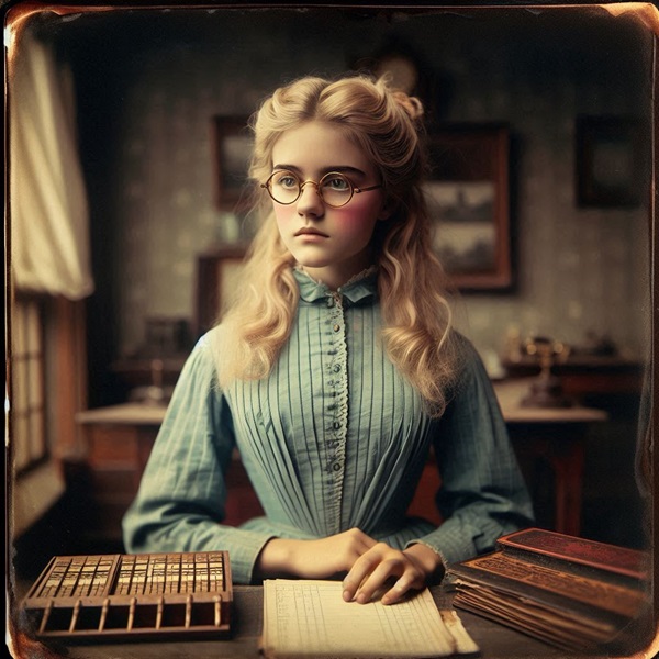 "It is my understanding that you require a book-keeper, Mr Priest. I have brought along some examples of the work I did for my Father's business in Panamint City. As you will see, my penmanship and arithmetic are clear and sound." she said, pushing the two ledgers toward him. In those days, the double entry method of accounting was not prevalent, and the two aforementioned skills were the most prized possessions of a prospective accountant.